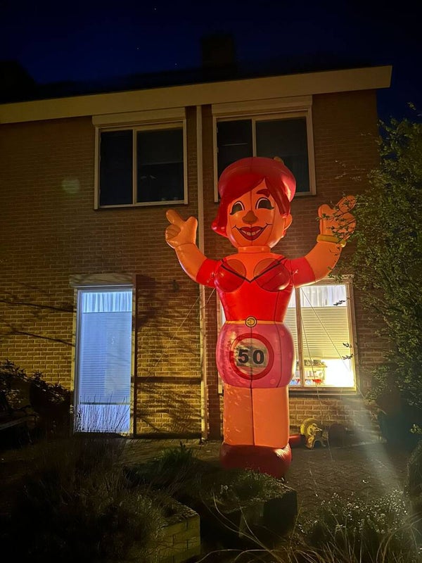 Wordt er een jongedame 50 jaar en mag dat groots gevierd worden? Dan is deze opblaasbare Feestende Sarah van 3,5 meter een geweldige verrassing. Deze vrolijke Sarah pop zorgt direct voor feestelijke sfeer in de omgeving van Nijverdal.